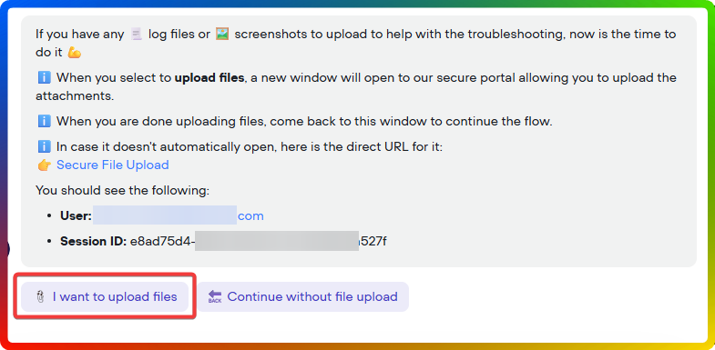 You may need to share large files with support for troubleshooting or advanced analysis. Traditional email channels often have size limits, so we offer two secure, scalable methods for uploading large attachments. These options ensure secure file handling and enable enhanced AI-powered analysis when appropriate.