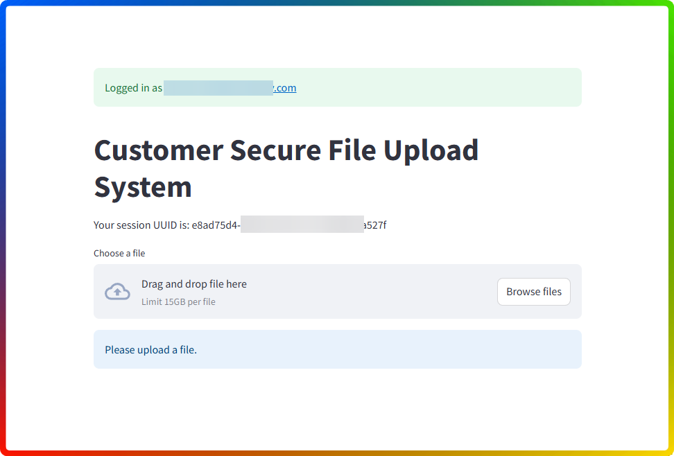 Each upload link or SFTP credential is uniquely generated and time-bound, ensuring your data is handled securely.